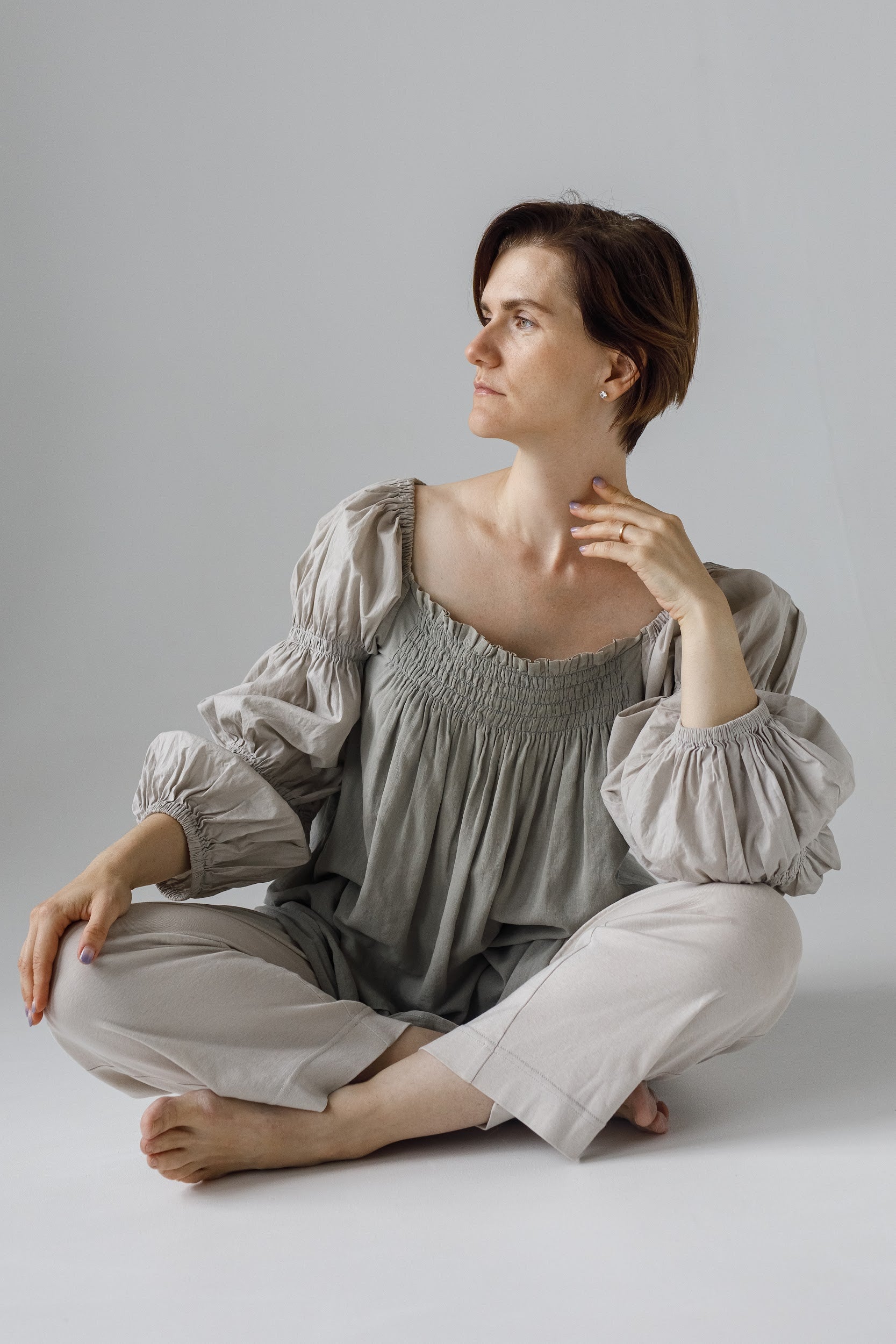 「Maria」ルームから外へ、美しさをつなぐセット上下セット(ブラウス+パンツ)