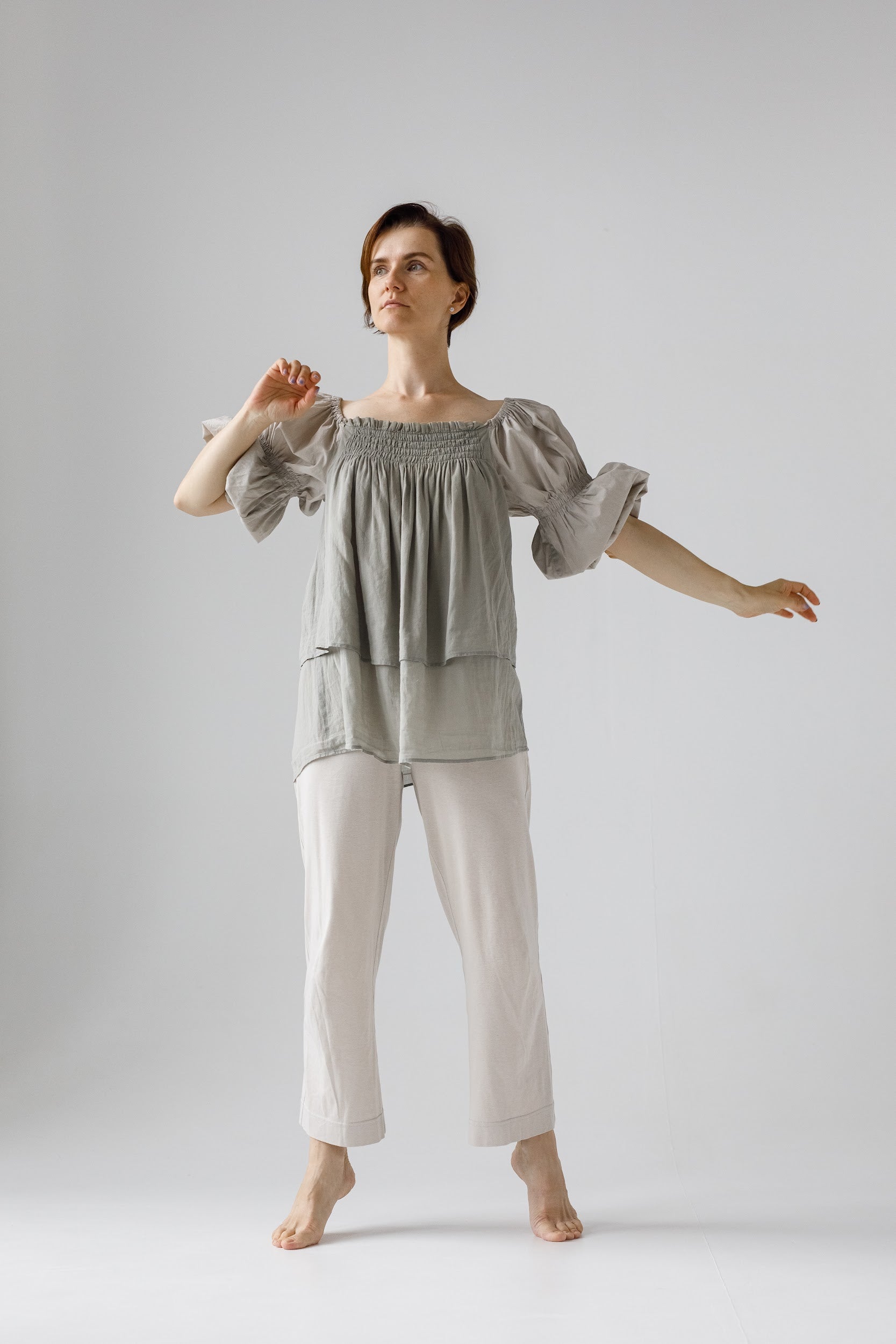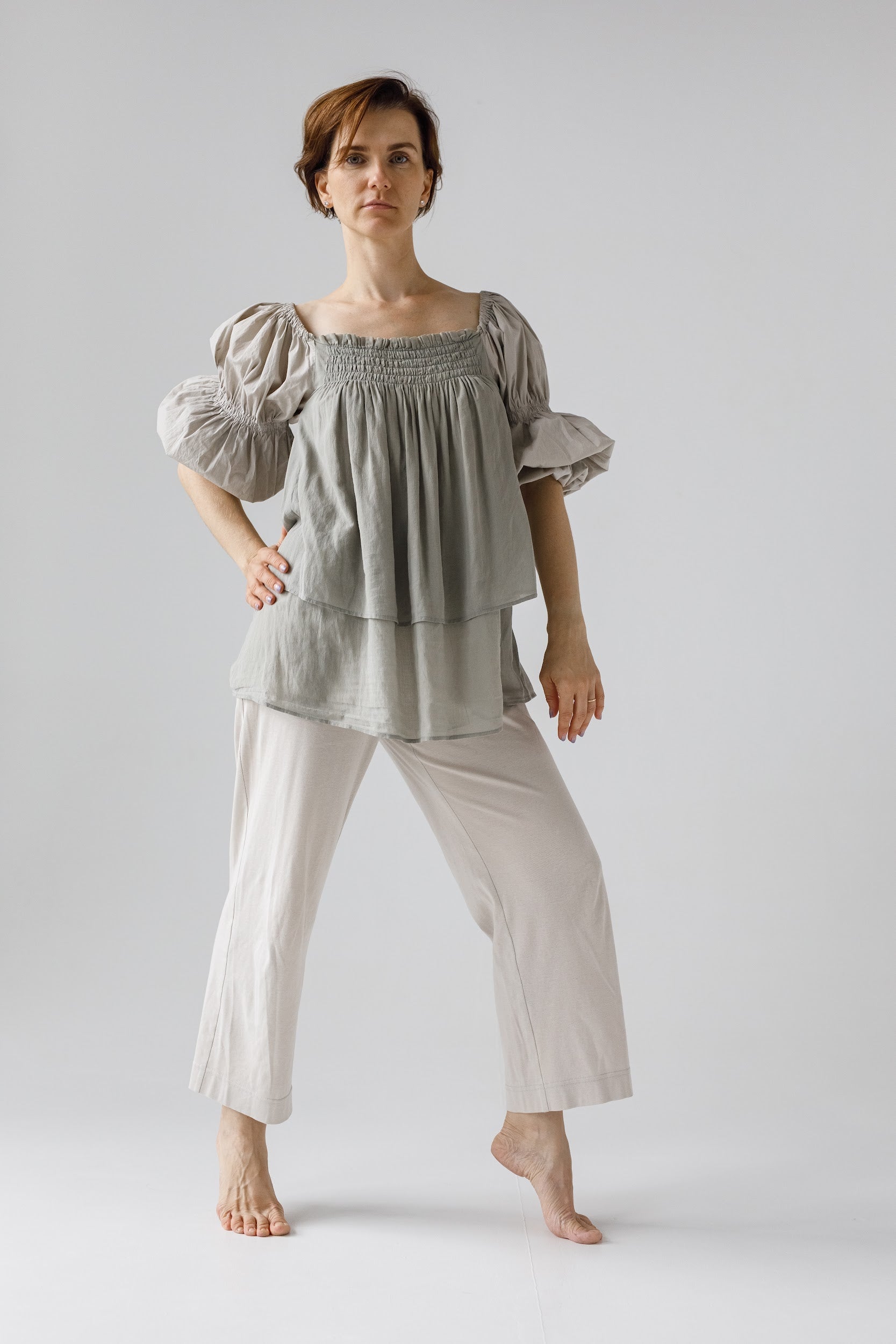 「Maria」ルームから外へ、美しさをつなぐセット上下セット(ブラウス+パンツ)